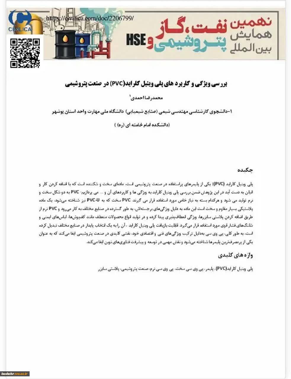 امتیاز دهید : پذیرش مقاله محمد رضا احمدی دانشجوی آموزشکده پسران بوشهر در نهمین همایش بین المللی نفت، گاز، پتروشیمی و HSE 3 سهشنبه 1 مهر 1404 ساعت 18:49